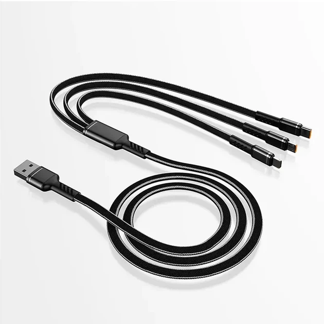 Кабель універсальний для заряджання 3 в 1, швидка зарядка, передача даних microUSB, Type-C, Lightning YXF35670 чорний