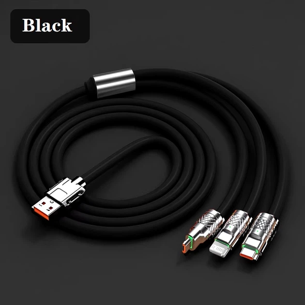 Кабель універсальний для заряджання 3 в 1, швидка зарядка, передача даних microUSB, Type-C, Lightning YXF23571 чорний