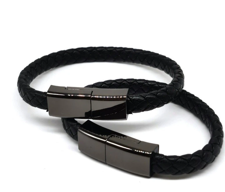Кабель браслет шкіряний USB-Type-C чорний 18 см (W20039)