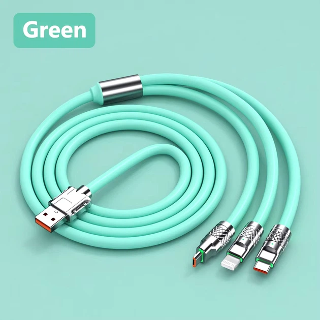 Кабель універсальний для заряджання 3 в 1, швидка зарядка, передача даних microUSB, Type-C, Lightning YXF23571 зелений