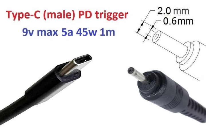 Перехідник для роутера 9v (3a, 27w) 2.0x0.6(1.0)mm 1m з USB Type-C (male) Power Delivery PD тригер (A class) 1 день гар.