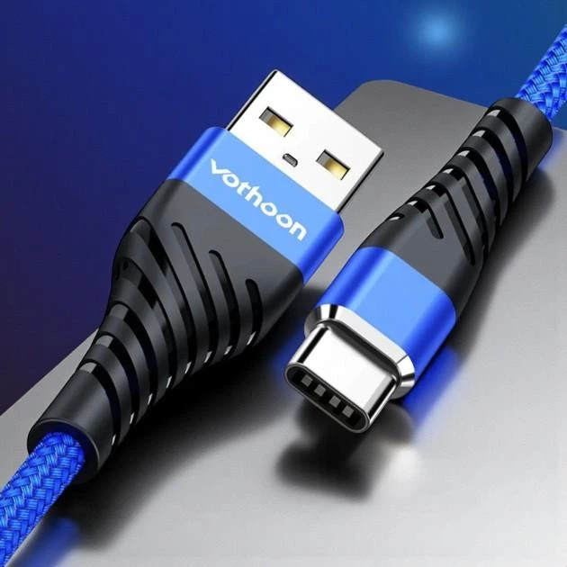 Кабель зарядний USB Type C 1 м синього кольору 3А нейлоновий