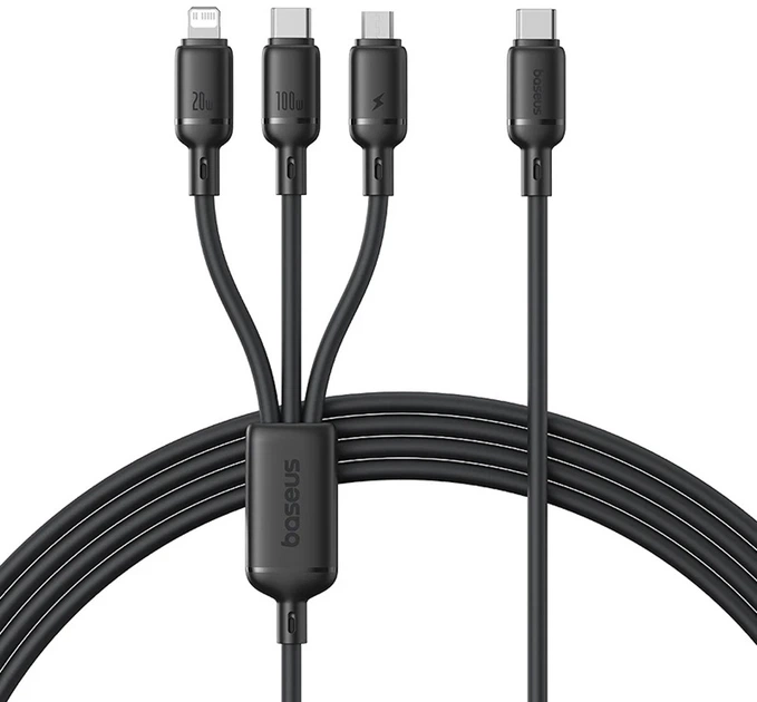 Кабель 3 в 1 Baseus Silky One-for-Three Fast Charging Cable USB-C to M+L+C 100W 1.5m Black