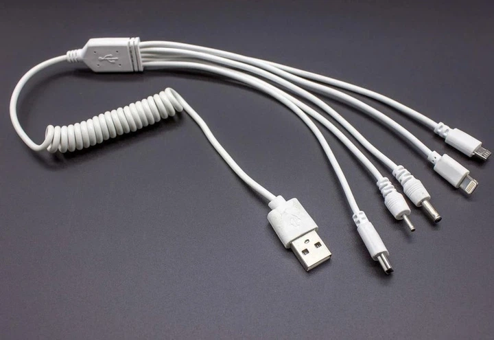 Кабель універсальний 5в1 Usb U7 білий пружинний кабель lighting microUsb багатопортовий зарядний шнур