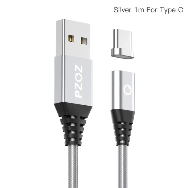 Магнітний кабель USB Type-C PZOZ для заряджання і передачі даних (Чорний, 2м)