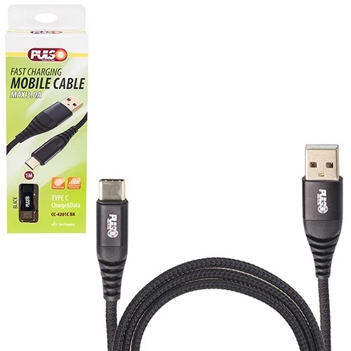 Кабель PULSO USB Type C 3А, 1m, black (швидка зарядка/передача даних) (CC-4201C BK)