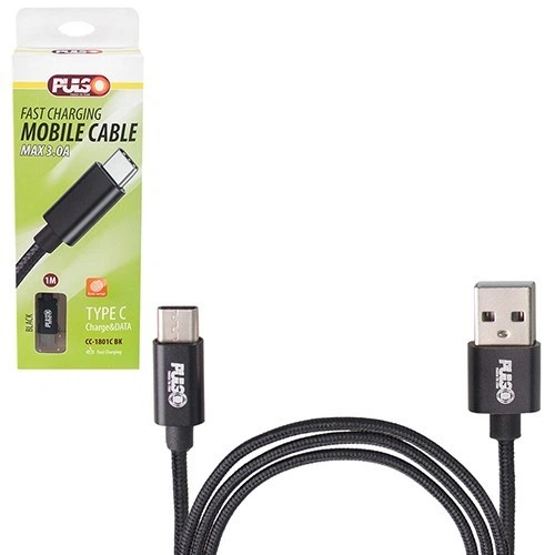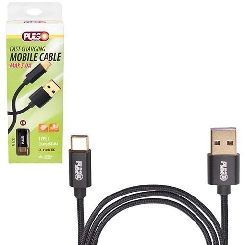 Кабель PULSO USB Type C 5А 1m black супер швидка зарядка передача даних CC-1101C BK
