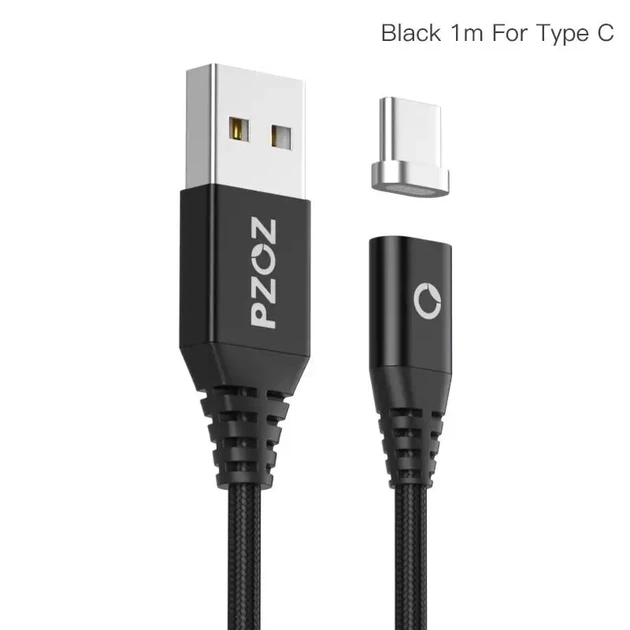 Магнітний кабель USB Type-C PZOZ для заряджання і передачі даних (Чорний, 1м)