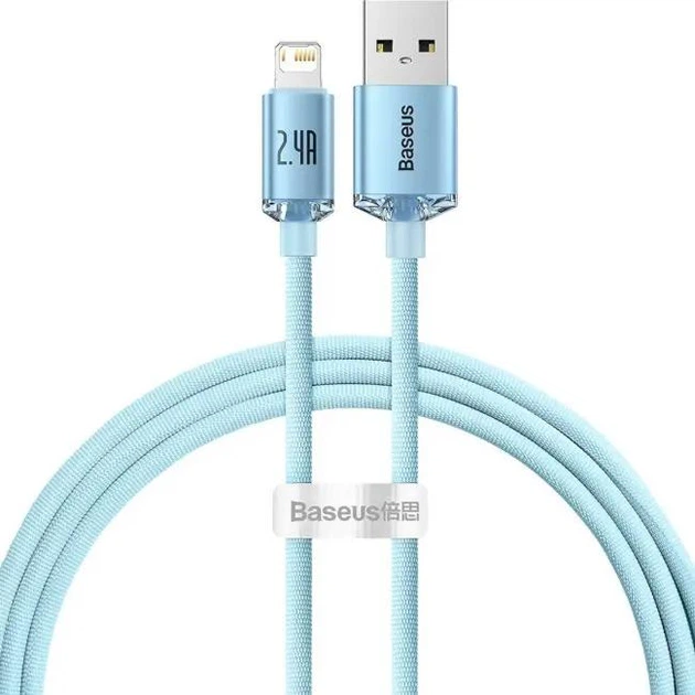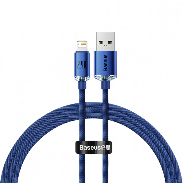 Кабель для зарядки Lightning Apple BASEUS Crystal Shine Series |1.2м/2.4A| Синій