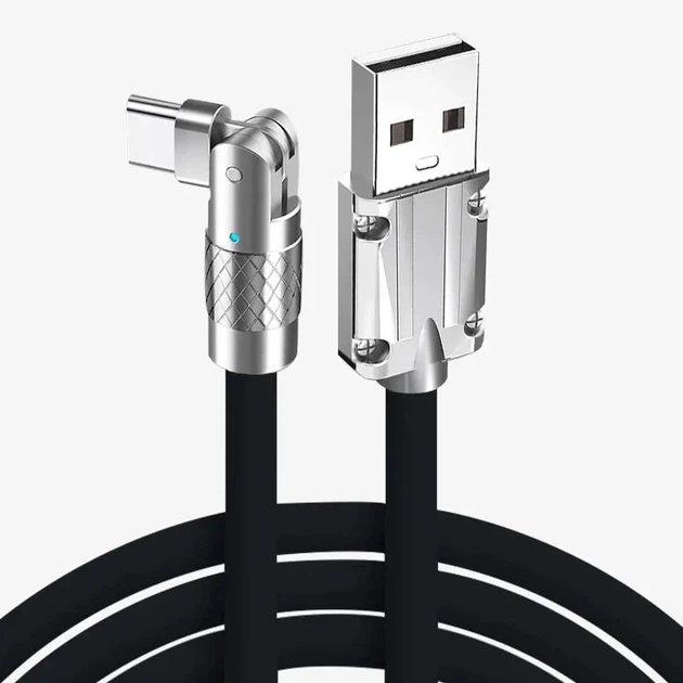Кабель Для Швидкого Заряджання Usb Type-c 120w 6a 150 См Чорний З Підсвічуванням Поворотний Кабель 180 ° (298799)