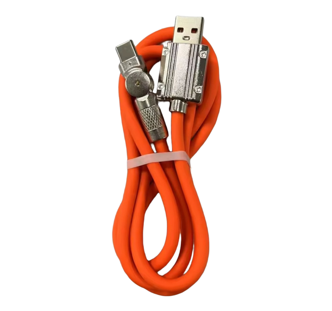 Кабель для швидкого заряджання USB Type-C 120w 6A (150 см) оранжевий, з підсвічуванням. Поворотний кабель Type-C 180 °