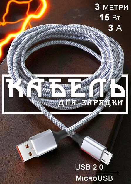 Кабель для зарядки телефону, Micro Usb, Дата кабель, для смартфона, планшета, Андроїд , Самсунг, Хуавей, Мейзу - Білий