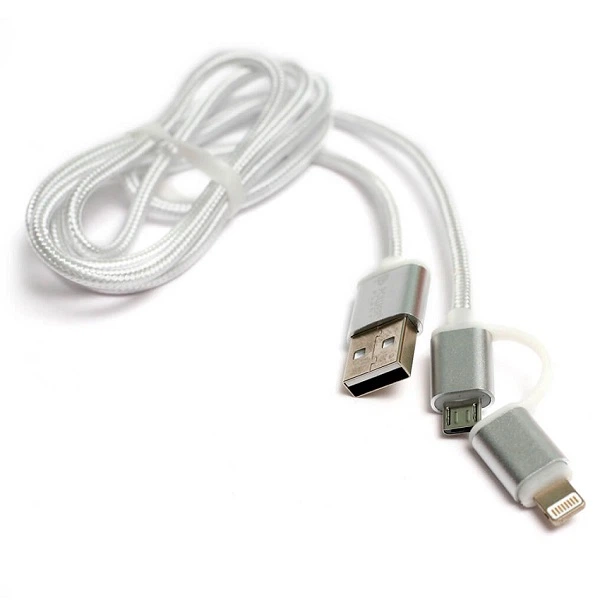 Кабель usb microusb/lightning 2a 2в1 1м білий PowerPlant, KD00AS1292