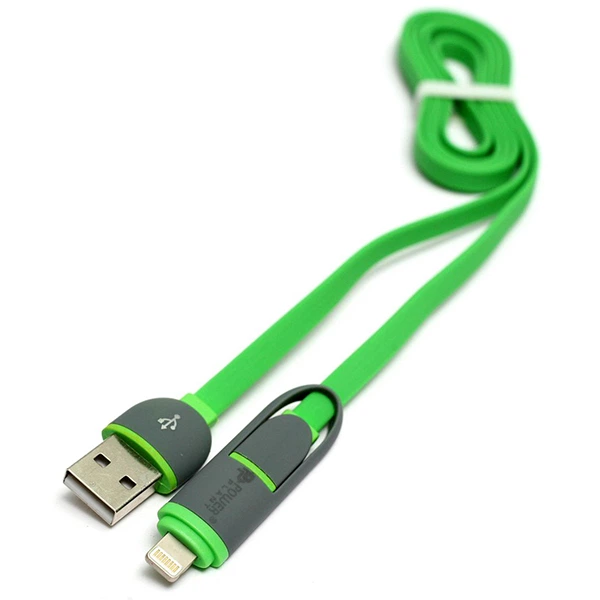 Кабель usb microusb/lightning 2a 2в1 1м зелений PowerPlant, KD00AS1291