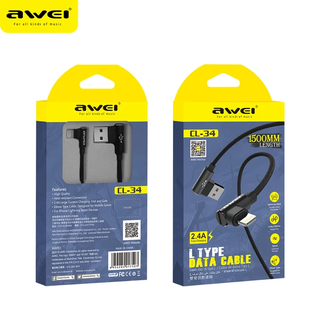 Кабель AWEI Lightning L Type CL-34 |1.5m, 2.4A|