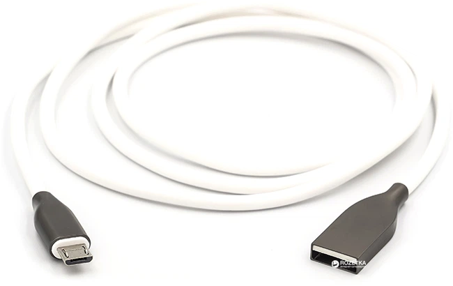 Кабель PowerPlant USB - microUSB 1м силикон белый