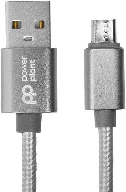 Кабель PowerPlant USB - micro USB, 1м, нейлон, металевий штекер, сірий