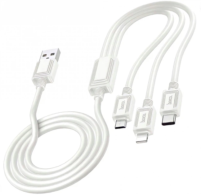 Кабель для заряджання телефону 3 в 1 Micro USB+Type-C+Lightning 3 in 1 Hoco Original Series 1M 2A для iOS/Android/Samsung/iP