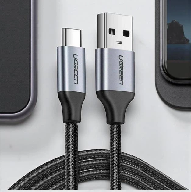 Кабель Ugreen USB to USB Type-C Cable Nickel Plating Aluminum Braid 3A 0,5 м Black