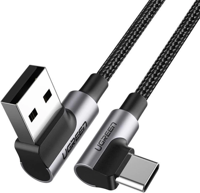 Кабель UGREEN US176 Angled USB 2.0 to Angled USB Type-C Cable Nickel Plating Aluminum Shell 3A 2m Black (20857)