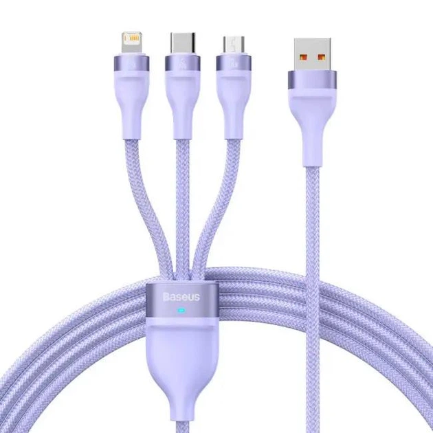 Кабель Baseus Flash Series 3-in-1 Cable USB to MicroUSB+Lightning+Type-C 66W 1.2m CASS040005 Purple