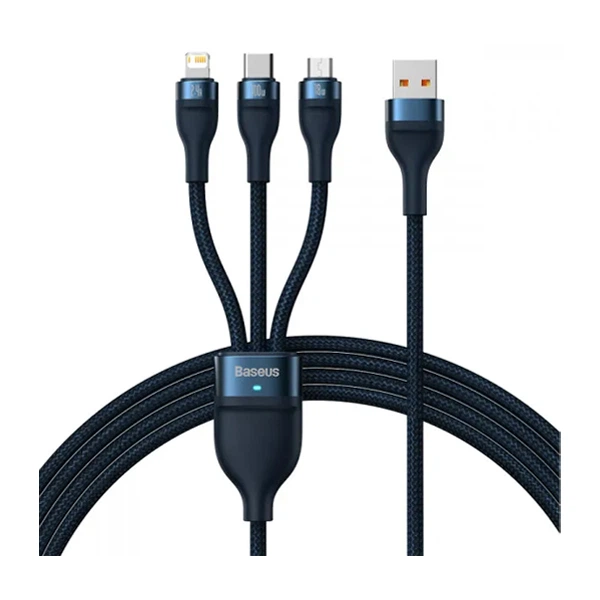 Кабель Baseus Flash Series 2 3-in-1 Micro USB+Lightning+Type-C 100W 1.2m Blue (CASS030003)