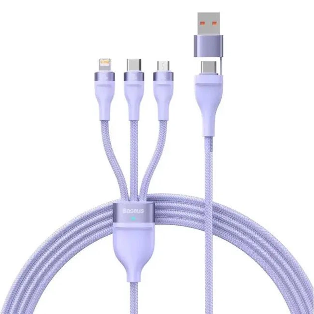 Кабель Baseus Flash Series 3-in-2 Cable USB+Type-C to MicroUSB+Lightning+Type-C 100W 1.2m CASS030105 Purple