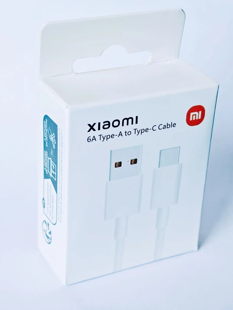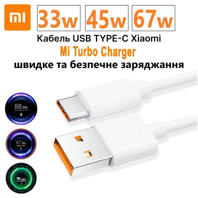 Кабель Xiaomi супершвидка зарядка 120W 90W 67W 33W Mi Turbo Charge USB Type-C 6A 1м Білий