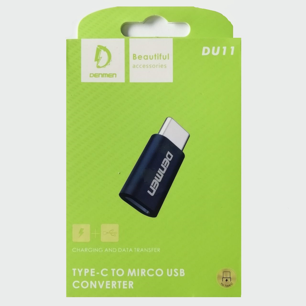 Перехідник адаптер MicroUSB to Type-C DENMEN DU11 Чорний