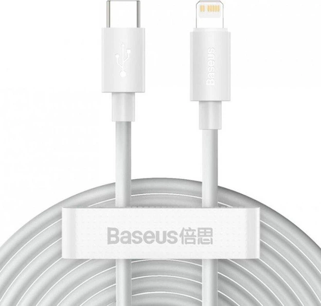 Кабель Baseus Simple Wisdom Data Cable Kit USB to Lightning PD 20W комплект 2 шт 1.5m White (TZCATLZJ-02)