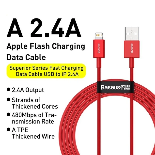Кабель Baseus Superior Series Fast Charging Lightning 2.4A 2m Red