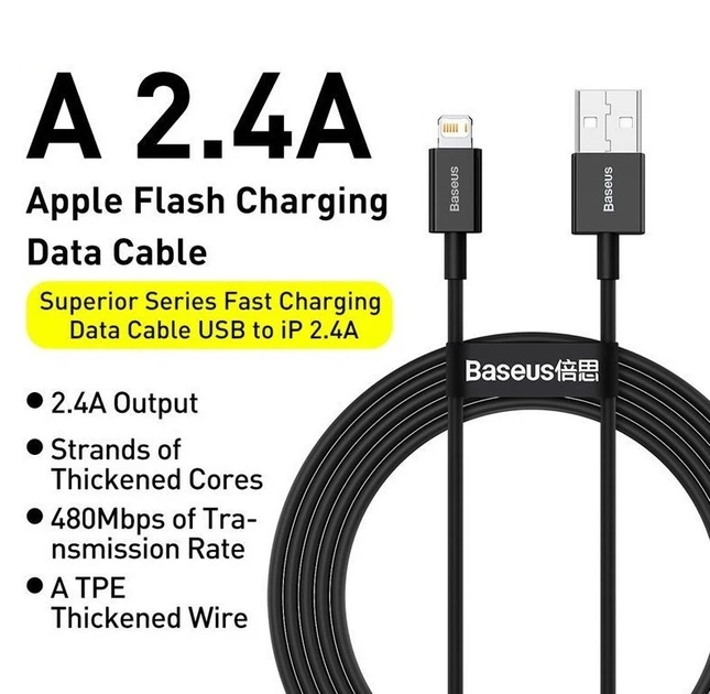 Кабель Baseus Superior Series Fast Charging USB-A to Lightning 1m Black (CALYS-A01)