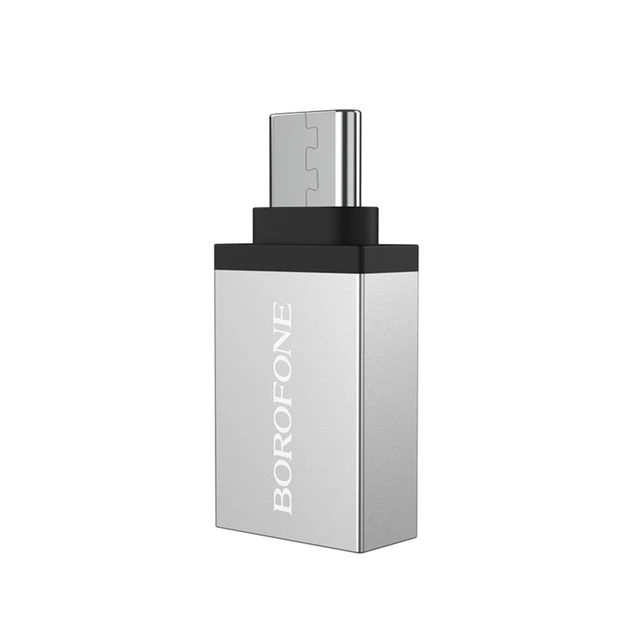 Адаптер перехідник Borofone BV2 MicroUSB to USB 3.0 (F) сріблястий