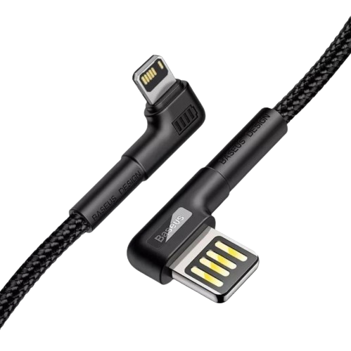 Кабель для Айфона Lightning Т-подібний кутовий Baseus двосторонній для заряджання та передачі даних 2 м Чорний