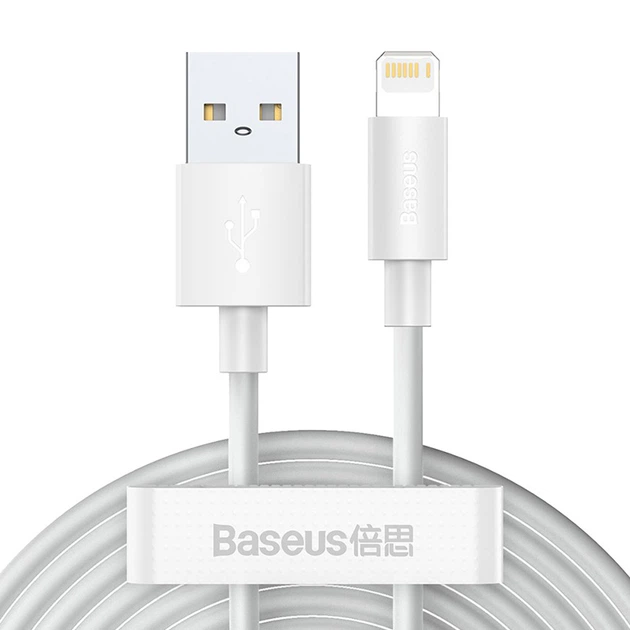 Кабель USB Baseus TZCALZJ-02 Simple Wisdom Data Cable Kit Lightning (2.4 A) (1.5 M) 2шт. Білий