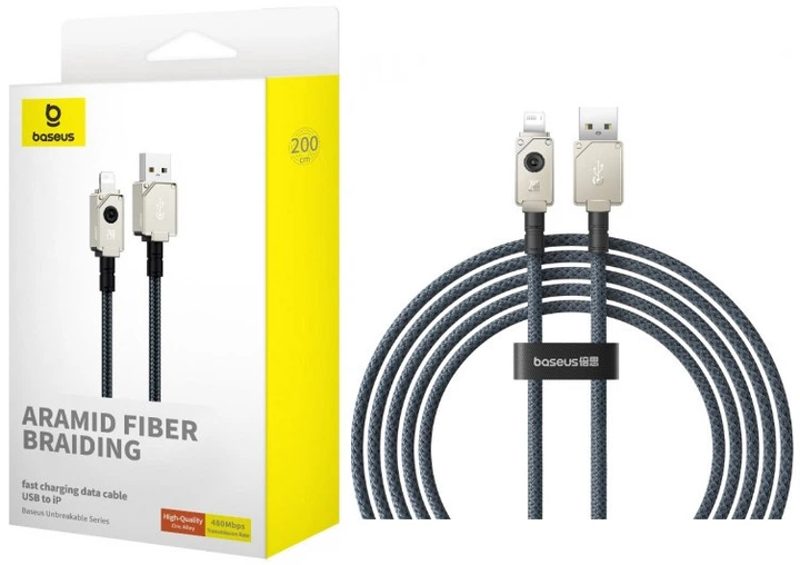 Data Кабель Baseus Unbreakable Series Fast Charging USB to Lightning 2.4A 2m, Cluster Black