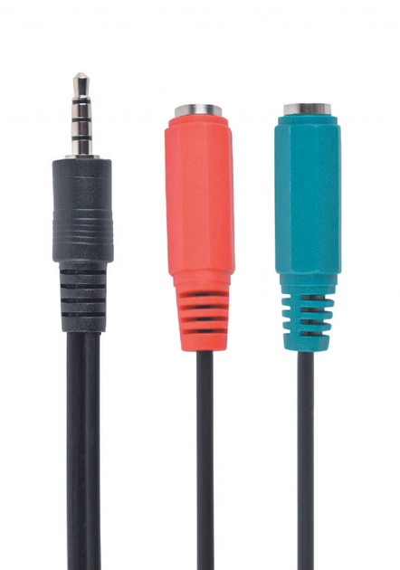 Адаптер 3.5 мм 4-pin для мікрофону та навушників з різним кольоровим маркуванням зелений та червоний 20 см