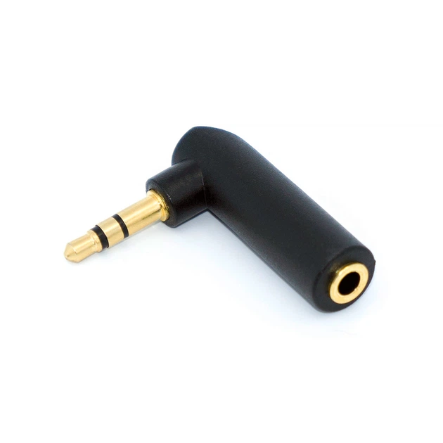 Адаптер аудіо, штекер 3.5мм стерео - гніздо 3.5мм стерео, кутовий, Gold, пластик