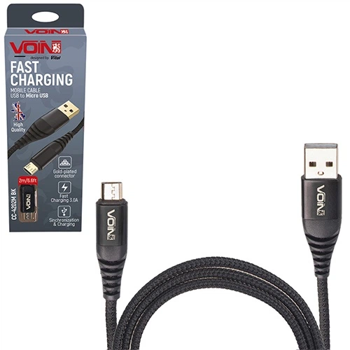 Кабель VOIN CC-4202M BK USB - Micro USB 3А, 2m, black (швидка зарядка/передача даних)