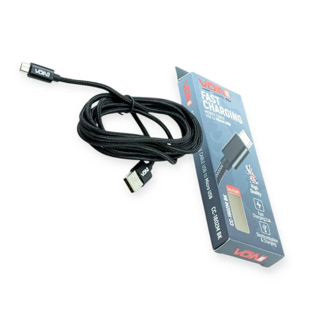 Кабель для заряджання Voin USB - Micro USB, 2м, 3.0А чорний, круглий каучукове обплет.