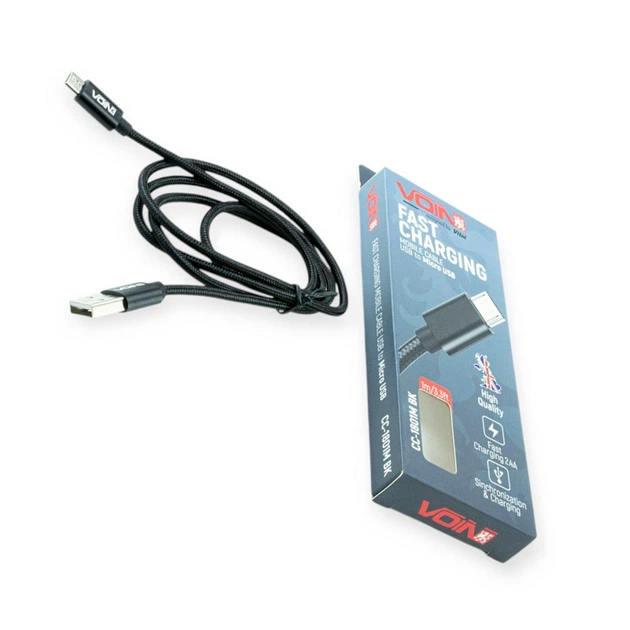 Кабель для заряджання Voin USB - Micro USB, 1м, 3.0А чорний, круглий каучукове обплет.