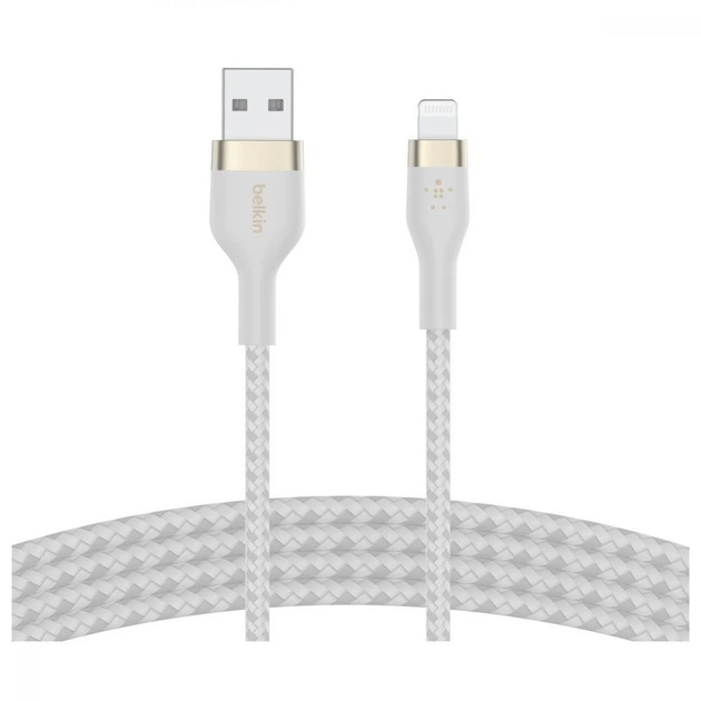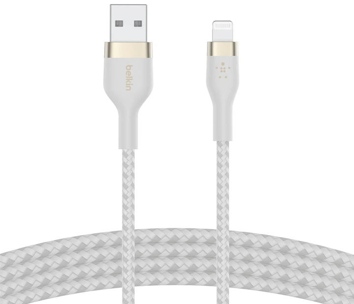 Кабель заряджання/синхронізації Belkin USB-С > Lightning, 2м, плетений, білий (CAA004BT2MWH)