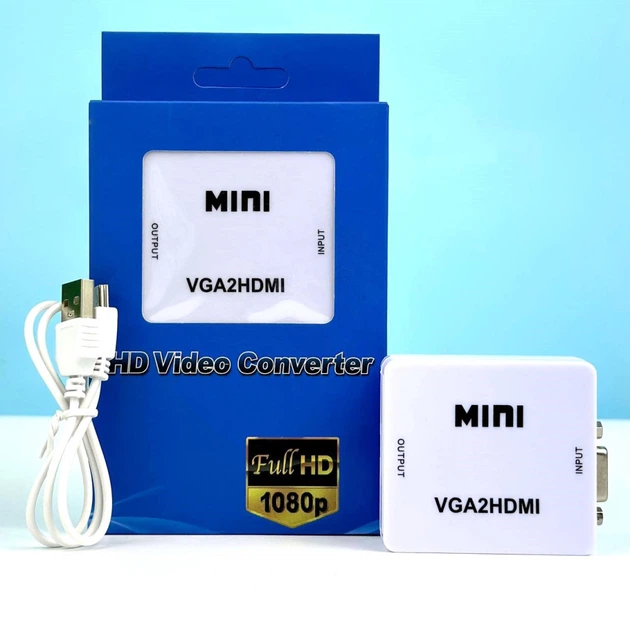 Перехідник конвертер VGA to HDMI |3,5 мм mini-jack, Full HD| Білий