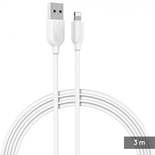USB кабель для смартфону Borofone BX-14 з роз'ємом Lightning, 2.4A, Білий, 3m