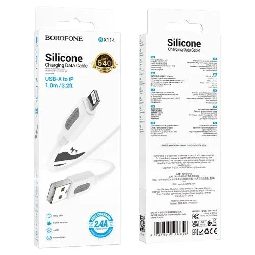 Кабель BOROFONE BX114 Structure Silicone for Lightning 2,4A/1m білий