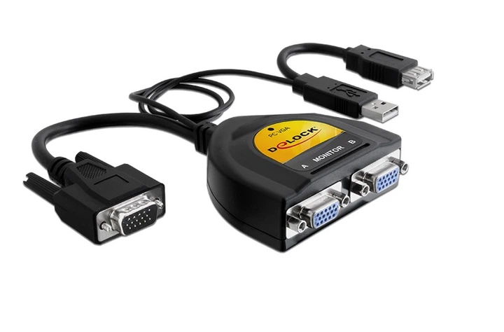 Перехідник відео Delock VGA HD15 1x2 (Splitter) Act 450MHz USBpower каскад 55m чорний(70.06.1968)