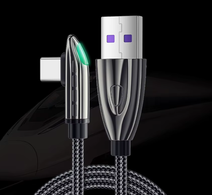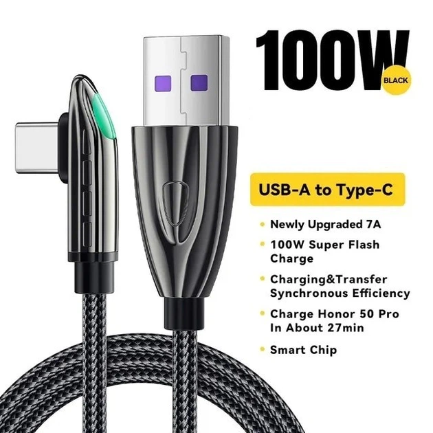 Кутовий кабель 90 градусів 100W 7A USB Type-C, шнур для швидкого заряджання телефону та смартфону KGY887