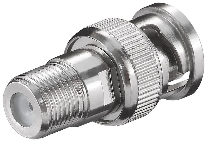 Перехідник антенний Goobay BNC/75ohm-RF:F M/F адаптер прямий HD-SDI Zinc срібний(75.01.1850)