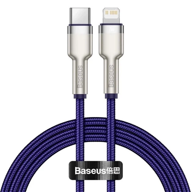 Кабель Type-C Lightning Baseus Cafule Series Metal 20W (1 метр, зарядка, передача даних, швидка зарядка) - Фіолетовий