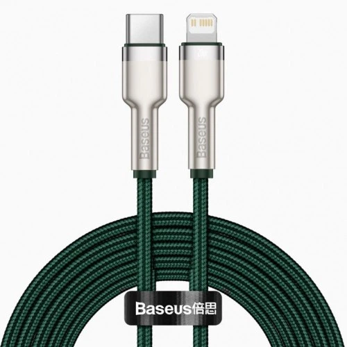 Кабель Type-C на Lightning Baseus Cafule Series Metal 20W (2 метри, зарядка, передача даних, швидка зарядка) - Зелений